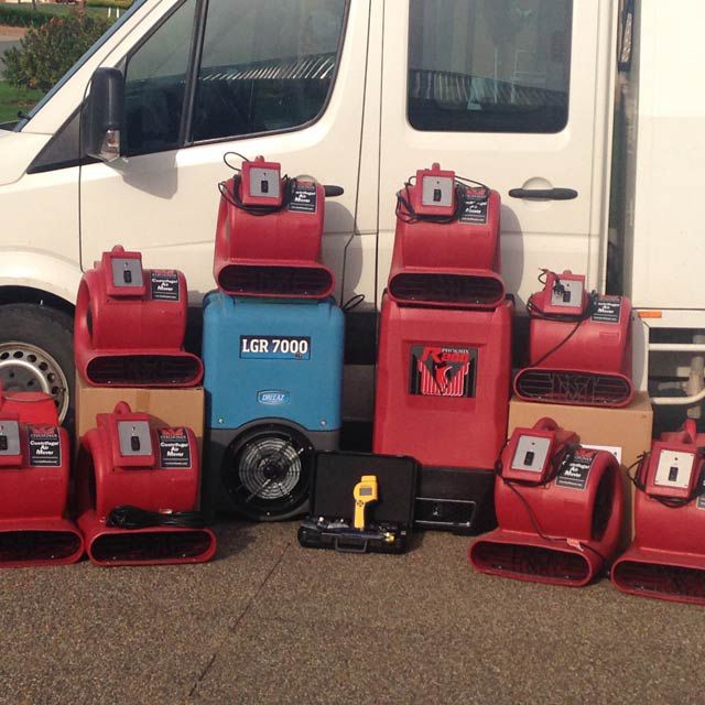 Once we have removed any free or standing water and any other items that may be at risk of being damaged, we begin the restoration process. We install mechanical drying equipment to remove all excess moisture and also dry the walls, floors, cupboards, and concrete slab using industrial air movers, dehumidifiers and monitoring equipment. This process is vital in preventing subsequent damage and harmful mould growth.